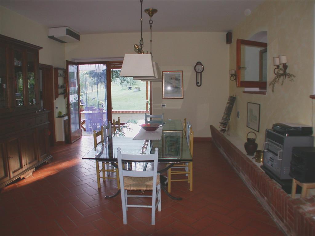 Immobile in buono stato di manutenzione, ubicata in zona collinare con ampio resede esclsivo. Disposizioni interne: Piano terra ampio soggiorno,sala pranzo,cucina,bagno,magazzino e cantina - Piano primo quattro camere,due bagni, studio,soggiorno con camino. La proprietà comprende inoltre due piccoli annessi di 40 e 35 mq.
